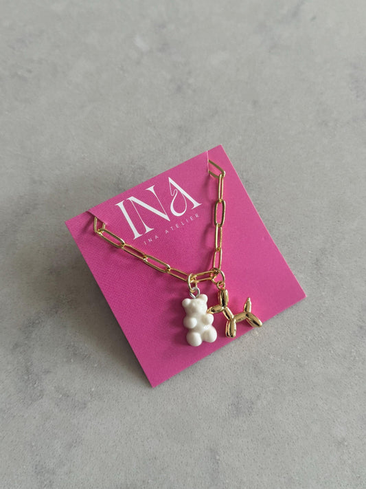 Gold Balloon Dog & Gummy bear Necklace Chain